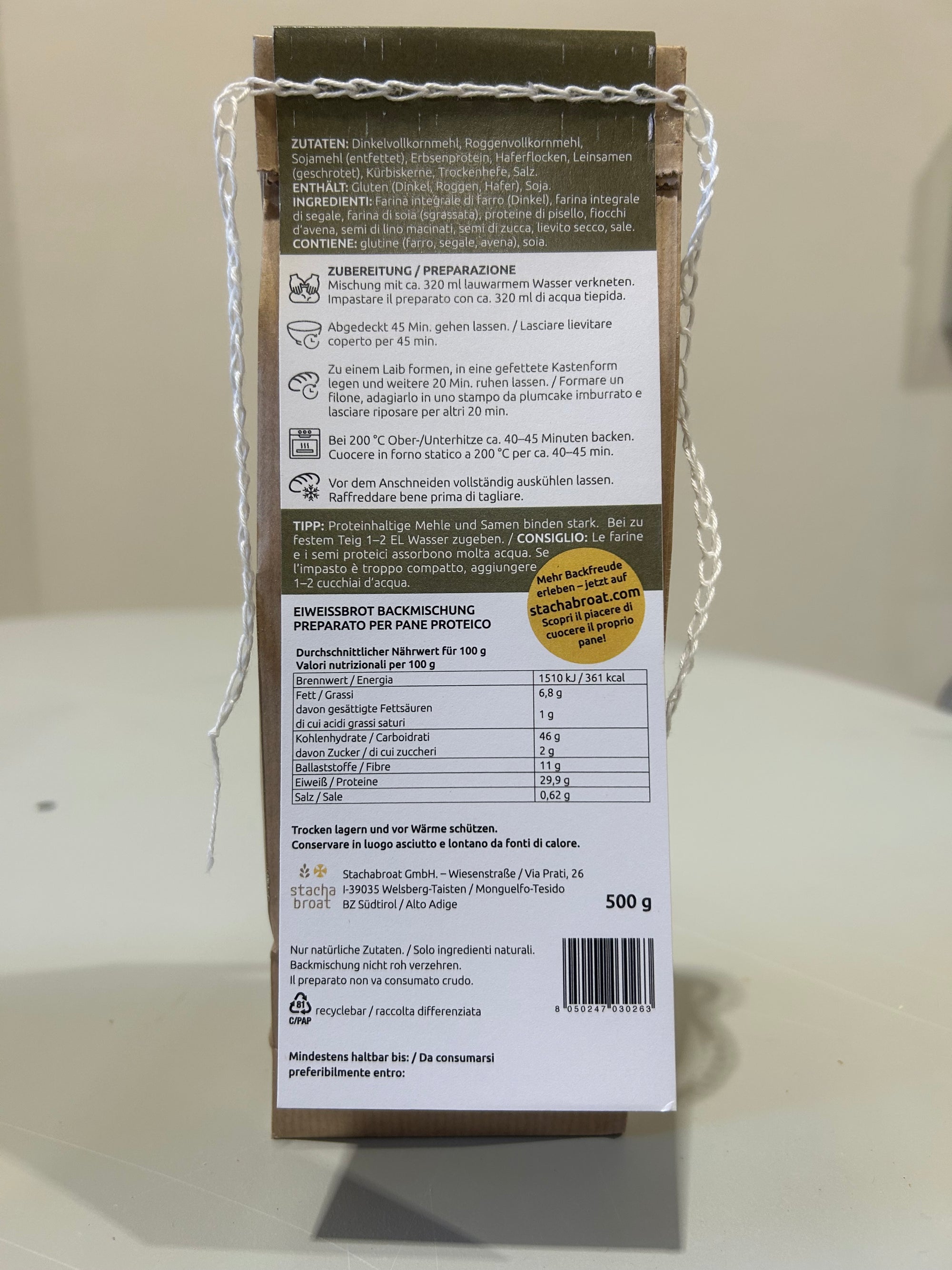 Kräftiges Dinkel- und Roggenvollkornmehl vereint sich mit Soja- und Erbsenprotein zu einem besonders eiweißreichen Brot. Haferflocken, Leinsamen und Kürbiskerne sorgen für einen kernigen Biss und natürlichen Geschmack – ohne Zusatzstoffe, aber mit extra viel pflanzlichem Protein.