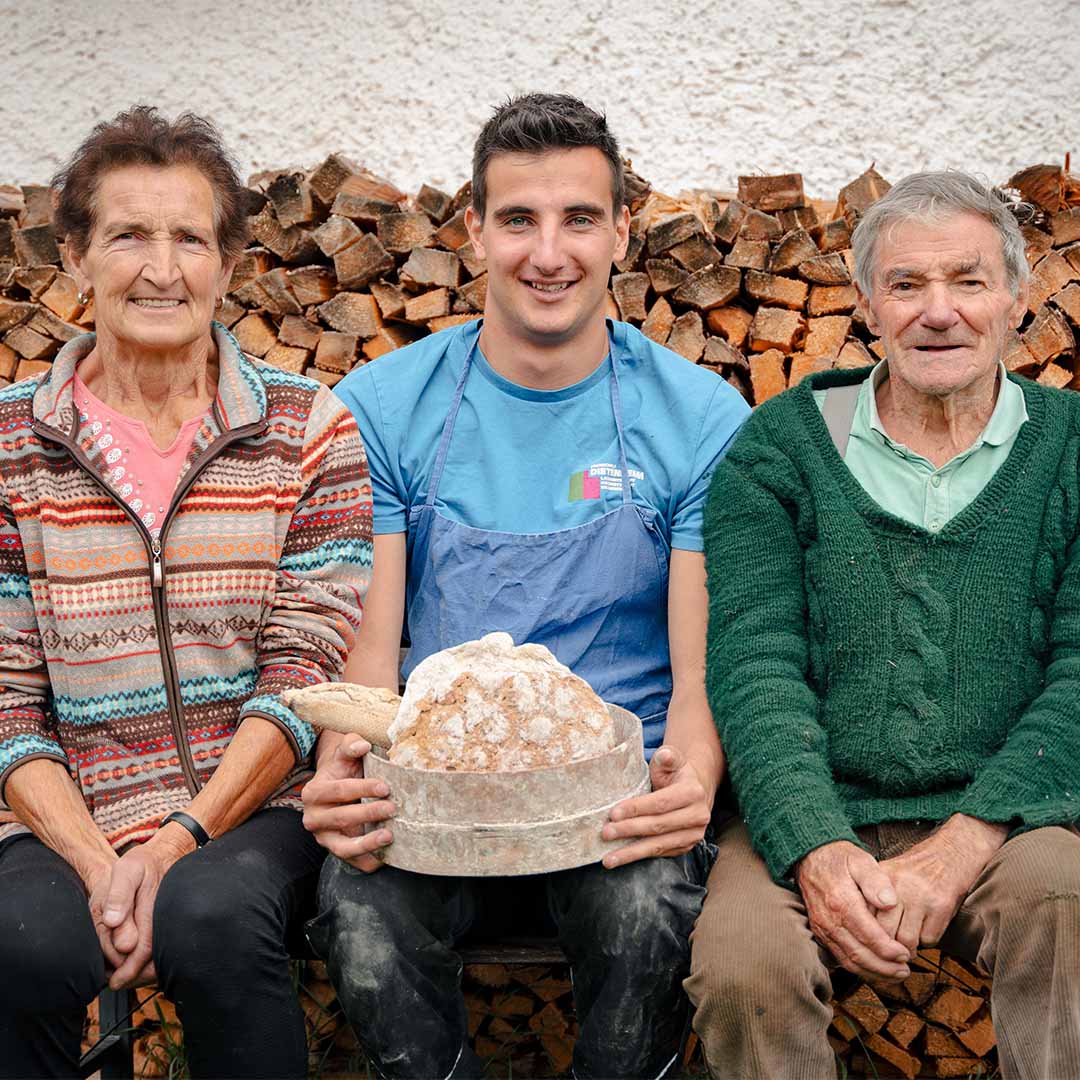 La cottura del pane ha una lunga tradizione da noi. Già il bisnonno Peter cuoceva il pane per la famiglia nel suo forno a legna. Il nonno Hans, che ha 93 anni, racconta che durante la sua giovinezza si cuoceva il pane due volte l'anno: in primavera e in autunno.